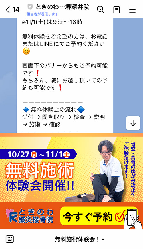ときのわ鍼灸接骨院 堺深井院のご予約・お問い合わせは、お電話またはLINEのお好きな方法をお選びいただけますが、できる限りお電話でのご予約が確実です。